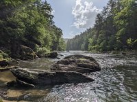 The official group paddle that had been organized for Friday was canceled due to the forecast, but after monitoring it closely for a while, a small group of kayakers decided it was safe enough to go run section 3.5, Thrifts to Woodall. Scott was part of the group and before he headed out to hit the river, set up the tent so I could start setting up the rest of camp and have a place to nap and relax while he paddled. The weather ended up being fine despite some showers and I enjoyed a restful afternoon of reading and lounging around camp.