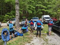 At the takeout we had a quick snack before hoisting the raft back up the hill to the parking lot which proved to be both comical and exhausting. The takeaway is that there is no great way to carry it and you just have to take your time and carry it a few hundred feet and then put it down and rest. After catching a ride back to the put-in to get Scott’s truck and trailer we then deflated the raft and headed back to the campground to pack up. It seemed that our equipment had multiplied over the weekend and it didn’t pack quite as neatly as on the way to the river. We made it home in time for Sunday dinner, tired but content after an enjoyable weekend on the river with friends in a beautiful wilderness.