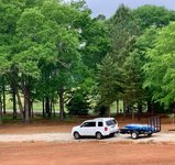 Trailer in tow, we left Easley Friday morning under ominous threatening skies and during the drive there I was nervously watching my weather app and radar- the forecast was calling for severe storms and possibly tornados. Not exactly ideal camping conditions… (Fun fact, even though Scott has camped probably hundreds of times more than me, about a quarter of my tent camping experiences have involved nearby tornados.) We arrived at the campgrounds and decided to hang out and socialize for a bit and put off setting up camp because of the weather threat.