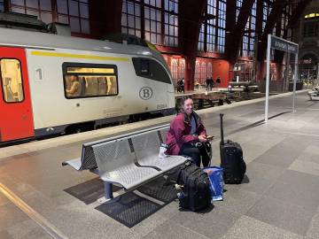 Post bike ride we had some time to kill before we needed to catch our Thalys high speed train to Antwerp (and then catch a local train onward to Ghent where we would be basing for the next few days) so we decided to visit an Amsterdam “coffeeshop” so Scott could get some “coffee” in the city where one consumes “coffee” in “coffeeshops.” I watched while he had his “coffee” and then had to tow him like a little puppy on a leash* around the city the rest of the evening while he smiled and giggled, taking in and enjoying the sights and sounds of Amsterdam in a new light. (*Scott says that this post “coffeeshop” tour of Amsterdam lasted for hours and we traversed the city and train station for hours and logged several miles of walking, but in reality we only took a short walk to the restaurant and then the train station. His judgment might have been impaired by the “coffee” which he admits was quite strong.)