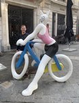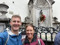 Traveling wasn’t quite as serendipitous or difficult with our newly purchased eSim so we ended up in Brussels, at the correct station, and on the correct day that our itinerary had called for. We had gotten a late start to the day, tired after the fun wedding festivities and high jinks from the previous night. It was a yucky day- overcast, unseasonably cool, and drizzly, but one of the first sights we spotted after disembarking from the train station put a smile on my face- it was a Smurf statue, and it was a tribute to the Smurfs creator, Peyo, who was a Belgian comic artist. (As aside: When researching for our trip I pointed out to Scott that the Smurfs were a Belgian cartoon, to which he replied “I never really got into those little **ckers.” So that is how Scott feels about the fictional little blue humanoid cartoon creatures that live in mushroom shaped houses in the forest.)