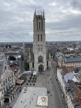 The next stop was to see the Ghent Belfry, a UNESCO World Heritage site. It was built around 1300 and is one of the three tall buildings that gives old town Ghent its distinct look. Scott loves a chance to climb a tall tower so this was right up his alley- it is 91 meters tall. The view of the city was incredible at the top and well worth the steep climb. My favorite part of the tower tour was the iconic copper dragon that has protected the tower since its conception and on special occasions has breathed fire.
