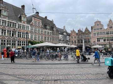 On the day of Sara and Joey’s wedding we had planned to see the sights and highlights of Ghent. We started our morning with the croissants we had bought at the market the day before (Scott had Nutella on his and I had the cheese we had bought) and then ventured out and about.