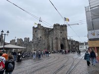 The nearly 850 year old Gravensteen Castle was next and I don’t know that I have ever seen Scott quite as excited as when he was touring the castle. As an aside, the in-person line for tickets was a mile long. Fortunately, Scott purchased cellular data service that morning, allowing us to purchase tickets online. The eSIM was about $25 and enabled us to have data access throughout the EU - a godsend from the navigation perspective. Unfortunately, it cut down significantly on the prospects of ending up at another beach town by mistake. The tour included a very well done, highly engaging and slightly cheeky audio tour which informed us of the history of the medieval castle and highlighted interesting features. It was when we were in the dungeon portion of the castle tour that Scott turned to me and with a straight face said he thinks he could have been an executioner. I’m sorry, what? Seeing the horrified look on my face he clarified it by explaining that he didn’t think that he could be the one to sentence someone to death but if he had been hired to be the guillotine guy then he thinks he could do his job without any tears or sniffles. So that happened. We thoroughly enjoyed the tour and must have taken one thousand pictures- my favorite one is of a sign asking visitors to kindly refrain from using the medieval latrine that emptied directly down into the Lys river below. (Side note: Scott likes to give things nicknames and his pet name for the Gravensteen Castle was Ass-grabin-steen and he used it every chance he could. I think he is actually a middle school aged boy and not an adult.)