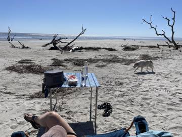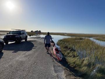 With only a little bit of directional challenge we found the routes through the marshes and over the Intracoastal Waterway and back into the creek that led to our take out and awaiting cars (and cake). This paddle, because of the route that we took, was closer to 4 miles and took us nearly 2.5 hours because of the tide. Thankfully there was no wind which would have made it quite treacherous and that’s what Joey had experienced on his previous trips to Capers Island. Once we were back to the takeout we unpacked all of our wet and sandy gear into our vehicles, loaded up the boats, said our goodbyes, and headed home. Scott and I enjoyed such a different type of paddling experience and were so appreciative that Joey was there to lead it. I highly recommend the trip to anyone that is considering doing it in the future, just bring your most potent bug spray!