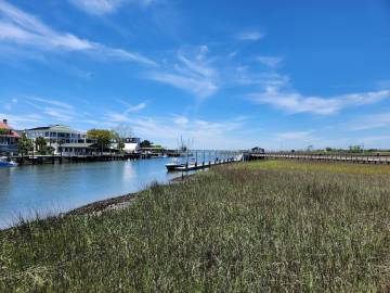 Sunday morning we said our goodbyes and Scott and I went to check out Isle of Palms. As we drove over the bridge it was fun to revel in our accomplishment from the day before and despite a very tired and sore body I was elated with how I had run and how I felt while doing it. It was nice taking a leisurely barefoot walk on the cool wet sand and seeing the Bridge in the distance. We were treated to a dolphin show and hung out and watched them feeding for a few minutes before heading back to the car. We drove through Sullivan’s Island to check it out and then went to Shem Creek for an early lunch, stopping at a restaurant we enjoy, Red’s Ice House. Full, tired, a little sore, but very content, we drove back home to Greenville, already thinking about the 2025 Bridge Run.