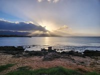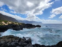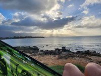 Scott picked me up and told me about his Ka’ena Point hike. It was 7.5 miles and it took him about 2.5 hours. The surf was much calmer today although it was still quite windy. When he finally came up on the actual point he encountered a fenced in area that was initially perplexing. It became apparent when he saw some other hikers that entered the enclosed area via a gate that this was a way to protect the wildlife and ground nesting birds from the invasive species (cats, mongoose, etc) that might threaten them. He came across a napping monk seal and chose this spot to stop and eat his lunch. He then exited the western exit of the enclosure to determine if there was another path that went around the point outside the fenced in area. He saw more nesting birds and it was stinky because of their presence. He continued along that trail until he came to a washout and then realized he had missed a spur that went around this impassable area. He took the spur for a bit before calling it quits and turned around since he had to come collect me. On the hike back he saw some off-road vehicles, some people fishing, and a few campers. I was glad that he had been able to do something fun while I worked and I enjoyed hearing about his hike.