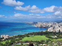 Our last day was finally here, and while we were sad about having to leave, we had one last fun half day of adventure planned since our flight wasn’t until that evening. We packed up, said goodbye to our Airbnb that had served as our home during our trip, dropped Karen off at the airport, and then headed just a ways east of Waikiki to hike Diamond Head Crater. Diamond Head Crater is probably the most popular hike on Oahu. You start at the crater floor of the ancient dormant volcano and hike up the paved (and crowded) pathway up to the top of the mountain. It took us a little over an hour and a half to do the 4.5 mile round trip hike. At the top we had 360° views of Honolulu, Waikiki, and the ocean. We got to check out some more of the WW2 era bunkers and it was obvious why this peak was used as a lookout by the military. All in all our consensus of this experience was that it was beautiful but very peopley.