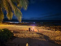 Scott, my faithful Uber driver, picked me up when I was done for the day and we headed in search of dinner. We stopped for takeout at a place called Seven Brothers across from Shark’s Cove. We walked across the street and had our dinner sitting on a brick wall overlooking the beach at the snorkeling spot (which was closed that day due to dangerous surf) and while we were eating we noticed some people on the beach playing with fire. Literally. A local fire dancing troupe were taking turns twirling fire sticks and “poi” (poi means “ball on a string”) which was mesmerizing to watch and was right up Scott’s alley. When we had watched our fill of fire dancing we headed back to Kailua, and as had become the norm, fell right into bed.