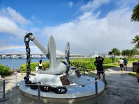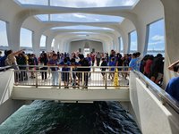 I had today off so we were free to explore however we chose and didn’t have to be back at any particular time for a lesson which was nice. Karen had expressed interest in visiting Pearl Harbor so we invited her to join us for the visit to the USS Arizona memorial. We met her there and were treated to a brilliant rainbow over the harbor as we waited our turn for the tour out to the USS Arizona.