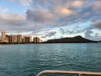 After my lesson was finished Scott came to pick me up at Maunawili and we headed “home” to our apartment for a bit. He had spent his morning on the beach and then met the kayak rental guy when our sea kayak got delivered. We took a quick nap before we needed to head into Honolulu for our sunset catamaran cruise which we were both excited about.