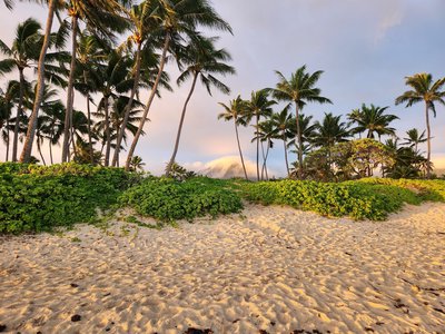 The certification didn’t start until nearly lunch time on Saturday, so Scott and I were able to get in a nice morning walk to and along the beach. This time we headed north from Kailua Beach and made our way to Kalama Beach. Along the way we were treated to a colorful sunrise and a stunning rainbow.