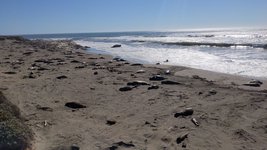 When we were at Moonstone Beach the previous day Scott had gotten a recommendation to visit Piedras Blancas Rookery. It is a beach located in the southern range of Big Sur where you can observe elephant seals year-round. We were amazed to see hundreds of elephant seals when we got there and enjoyed watching them lounge around in the sand and learning about them from the docents that patrolled the crowds. Evidently this beach in particular is attractive to the huge sea mammals because of the kelp forest that protects them from Great White sharks. At this time of year we were seeing only juvenile elephant seals (still unbelievably huge) as they hung out on the beach for their “catastrophic molt.” (Fun fact: Young elephant seals who have been weaned and are nearly ready to take to the water to begin hunting on their own are sometimes called “superweaners.”) Scott immediately noticed the electronic and telecommunication equipment on the observation deck and a docent told us that it was for the live-cam for observing the seals. Here is a link: http://elephantseal.org/live-view/