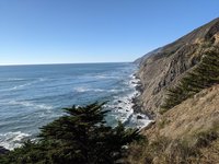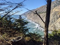 We were thrilled to discover dramatic views of the Pacific and the cliffs of the Santa Lucia mountain range from the Ragged Point Inn’s restaurant. The inn and restaurant were perched high up on a cliff right at the water’s edge and the waves that we got to watch were stunning in their size and power. Being from the east coast, and being accustomed to the somewhat tame and soothing waves of the Atlantic, the Pacific awes me with its mighty intensity and herculean force. We spent time after lunch exploring the grounds of the inn and taking pictures from the incredible vantage point. We decided that our next stop would be somewhere nearby with trees capable of hanging our hammocks where we could enjoy these views.