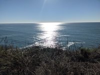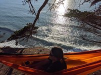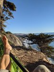 Scott is always scanning his surroundings for places to hammock and he scouted out what might be the very best hammocking location to date- a scenic overlook right on the land’s edge and the Pacific ocean 100 feet below us. We decided that there was no better place to witness another Pacific sunset and we set the hammocks up, lounging and napping and enjoying the sound of the waves crashing below us. We were treated to another dramatic sunset light show and when it was done we packed up the hammocks and began our journey inland to Fresno, content with another wonderful day of adventuring.