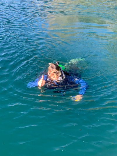 It took us about half an hour to paddle to the springs where manatees notoriously gathered. We spotted our first few manatees as we were making our way to the Three Sisters Springs. When we got to the popular spot we were able to float and observe them as they made their way into the protected sanctuary area where the warmest water was. We then tied the canoe up and donned snorkeling gear. I imagine it was comical watching me squish into a shorty wetsuit while balanced on a piece of coral! Scott’s sister Tiffany generously loaned me her snorkel gear and I enjoyed being able to get up close and personal with these docile sea mammoths. They are as large a horse but much more graceful and it was incredible to be so close to them- they would swim within inches of us and didn’t seem to be frightened by our presence- one even swam up to our canoe and booped it with his sweet sea creature nose!