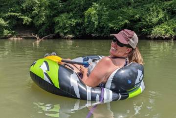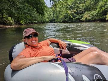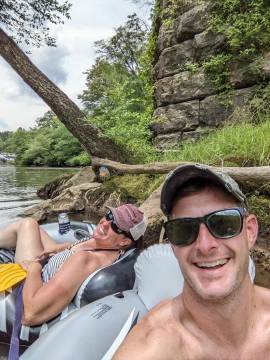 Towards the end of one of our tubing trips we had a blowout on one of the Aldi rafts that we were riding down the river which meant we had to bushwhack through the woods in an attempt to find civilization. Luckily we were near the house of a very nice couple that offered to drive us to Dolly Cooper park where one of our cars was parked.