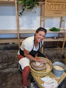 In late May as a date night, we took an introductory pottery class one Friday evening in downtown Greenville. It turns out that making clay behave in a manner in which is necessary to become recognizable as some sort of vessel (vase, glass, mug, bowl, etc.) is much trickier than it appears. We had a fun time learning how to make little vases and after we formed them we picked which color finish/glaze we wanted and the pottery fired them in their kiln and we picked them up a few days later. They are currently sitting empty but are patiently waiting to be filled with soil and to become little planters. The Wandering Bard is in the same complex as the pottery and we went over there to try mead afterwards. Mead is alcohol that comes from brewing and fermenting honey so it seemed apropos to try it. It is quite sweet and while interesting and worth a try, didn’t really appeal to either of us.