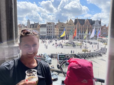 After the pee theft, and our walk around the highlights of the town, we took a break and went to the Duvelorium, a bar devoted to just Duvel beer, located in a stunningly beautiful medieval building, overlooking the market square. The outdoor balcony offered incredible panoramic views and the vantage point made for extraordinary people watching. The beer, like most Belgian beers, was simply divine; strong but smooth. We got a flight of beers and I tried hard not to take more than my fair share but I’m not sure how well that played out.