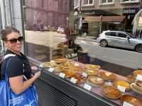 Tuesday morning I went on a pastry mission and found some fresh croissants just a few doors down from our apartment. We ate them with coffee in the little kitchen that overlooked the river and we were entertained by the morning activity alongside the riverbank. The town was a popular stop for cabin cruisers and one of the boaters that was docked beneath our apartment had a kitty and we enjoyed watching her stroll confidently around the decks of her boat as her owner went about his business of cleaning the boat. The river was bustling with electric boat rental traffic as well and it was amusing watching the slow boats go up and down the waterway and even more amusing watching the amateur captains trying to eventually dock them.