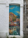 After reaching the small train station in Dinant, it was a short stroll across the charming Sax bridge spanning the Meuse to the main part of the town where our hotel/apartment was located. It was quite easy to find as it was located on the main street in the tiny town and by its distinct mural of Adolphe Sax on the outside. The city center was small enough that we could pick out our bright blue hotel from any pictures of Dinant that we saw. Once we made it inside Les Voisins De Mr Sax and into our appointed room, we decided that this might have been our favorite housing so far. Our room, although plainly appointed, overlooked the river and steep green hillside and was separated from the waterfront by only the narrow road that passed in front of the buildings. Plus, not to be outdone by the themed saxophones on the bridge with their elaborate murals and wrap around graphics, the toilet seat in our bathroom was Times Square themed. That’s pretty hard to beat.