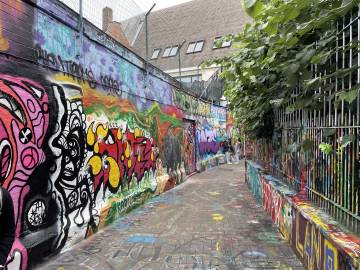 Our apartment looked directly down on an interesting Ghent feature: Graffiti Street, so that was our first stop. Graffiti Street is a short alleyway where graffiti is both allowed and encouraged and the only rule that applies is the “rule of the spray can” which evidently means you shouldn’t paint (paint? Or would it be draw? Maybe spray?) over works that are better than yours and don’t be noisy late at night and disrupt the local residents. It was a wild thing to see and we enjoyed seeing the creativity and talent of some of the artists. The paint that has accrued on the buildings in the alley since Graffitti Street was born in 1995 must have been close to an inch thick.