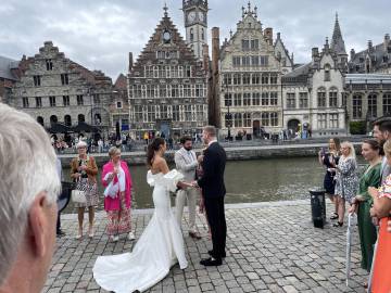 After the ceremony we had been directed to go take pictures around the old town area of Ghent or enjoy a drink at one of the million bars or tap rooms while the couple and their families took their wedding photos. We ended up at a small little tap room and each had a Belgian beer before making our way over to the event center. We had time to chat with Wim and Nadine before the brunt of the guests arrived and we enjoyed meeting the other guests and learning how they were connected to the couple.