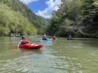 On Sunday most of the group headed to the Ocoee again. Many of those that were kayaking it were able to put in two laps and many of them spent time at the last rapid on the river, Hell Hole, playing in its giant surfing wave. The remainder of the group (about ten people) was lucky enough to be connected with one of Scott Manley’s friends, a private boater who runs three rafts down the Ocoee as a family trip every Labor Day. Dennis, Scott’s friend, said that he has been running the Ocoee since the 1980’s and has easily made 300 trips down it, possibly closer to 400 trips. He knew every ripple and rock in every single rapid on that river and knew the effect it would all have on the raft. He expertly guided us down and frequently shared fun and interesting facts about the river. His family treated us all to a picnic lunch between laps which was both delicious and appreciated.