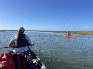 We traded out our usual whitewater boats in favor of a canoe on a late October weekend for an enjoyable paddle out to Capers Island Heritage Preserve, a barrier island off the coast of the South Carolina Lowcountry. My cousin Becky Shannon was kind enough to host us the night before since she lives in West Ashley, only about a half hour from where we would be launching.