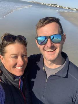 Sunday morning we said our goodbyes and Scott and I went to check out Isle of Palms. As we drove over the bridge it was fun to revel in our accomplishment from the day before and despite a very tired and sore body I was elated with how I had run and how I felt while doing it. It was nice taking a leisurely barefoot walk on the cool wet sand and seeing the Bridge in the distance. We were treated to a dolphin show and hung out and watched them feeding for a few minutes before heading back to the car. We drove through Sullivan’s Island to check it out and then went to Shem Creek for an early lunch, stopping at a restaurant we enjoy, Red’s Ice House. Full, tired, a little sore, but very content, we drove back home to Greenville, already thinking about the 2025 Bridge Run.