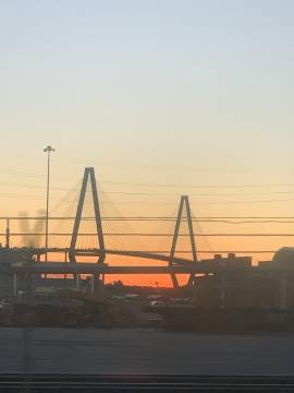 With just a few minutes to spare, we slid into the front of our corral and listened to the announcer and DJ hype up the crowd to see off the competitive wave of elite runners who would be finished with the race before we even reached the summit of the Arthur Ravenel bridge (the winner this year was a 22 year old Ethiopian runner named Ali Abdilamana who ran a smoking 27:53, and the top female was 25 year old Kenyan runner Sarah Naibei with a time of 31:41. I should note that her 10k time is my 5k PR time…). It took us about 13 minutes to work our way up to the start line because there were that many people running and the majority of them were behind us!