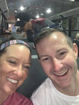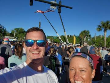 Bibs, race tee and bags collected, we then roamed around the expo. Scott ate about 14 Jonny Pops popsicles (I had one and forgot how much I don’t enjoy popsicles since I have sensitive teeth) and we collected more than our fair share of Liquid IV packets. (I love them for after my long runs, during the summer when I am out in the heat and humidity all day, and maybe for the occasional morning after a night of excessive fun and over-indulgence.) Part of my training plan was to abstain from alcohol for the week leading up to the race so it was hard to pass by the Tito’s booth and all the other various beer and wine vendors offering samples but I mustered up the self control. Part of your race entry includes a free drink at the Beer Garden at the expo and our drink tickets went unused. Yay us!