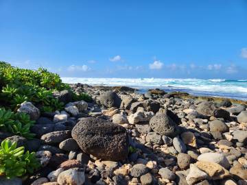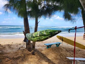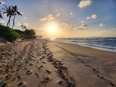 Scott, my faithful Uber driver, picked me up when I was done for the day and we headed in search of dinner. We stopped for takeout at a place called Seven Brothers across from Shark’s Cove. We walked across the street and had our dinner sitting on a brick wall overlooking the beach at the snorkeling spot (which was closed that day due to dangerous surf) and while we were eating we noticed some people on the beach playing with fire. Literally. A local fire dancing troupe were taking turns twirling fire sticks and “poi” (poi means “ball on a string”) which was mesmerizing to watch and was right up Scott’s alley. When we had watched our fill of fire dancing we headed back to Kailua, and as had become the norm, fell right into bed.