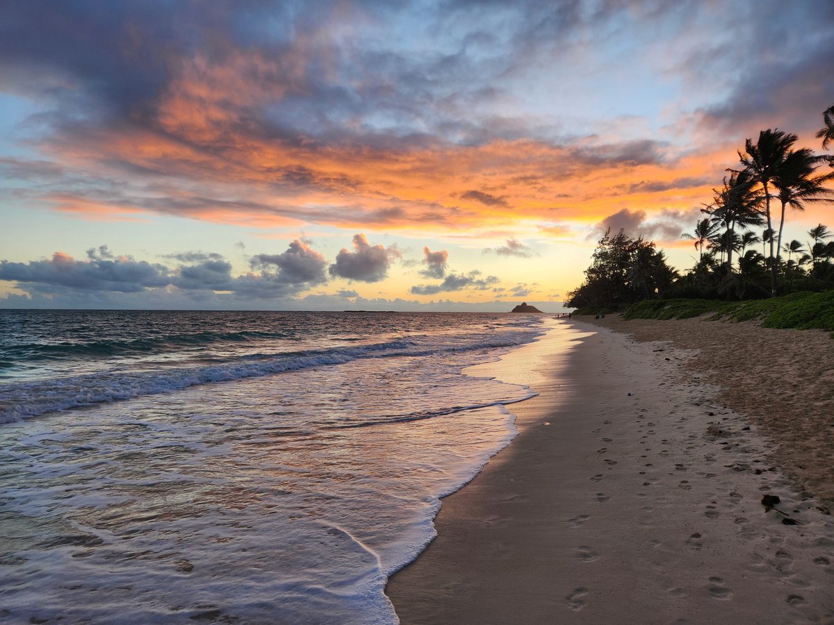 The certification didn’t start until nearly lunch time on Saturday, so Scott and I were able to get in a nice morning walk to and along the beach. This time we headed north from Kailua Beach and made our way to Kalama Beach. Along the way we were treated to a colorful sunrise and a stunning rainbow.