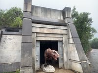 Unfortunately it was raining during our tour, which is par for the course on the windward side of Oahu, but we were good sports and spent the next two hours being driven around the ranch in an open-air truck, stopping at various notable sights where Jurassic Park was filmed. The land itself is beautiful and provides a stunning view of the Kaneohe Bay and the Ko’olau mountain range soars up seemingly from the middle of the property, creating an incredibly dramatic scene. During the World War 2 era, the ranch was an airfield, and defensive structures were built into the mountainside overlooking Kaneohe Bay. Post WWII, the land was returned to the family but the structures remain and have now been turned into a film museum of sorts with actual movie props. Getting to go inside the bunker was fun and also gave us a little break from the rain.