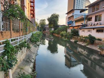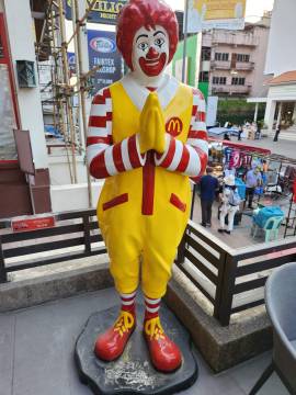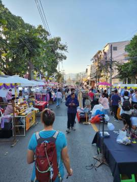 We headed back to our hotel. I decided a nap was in order and Scott decided that he wanted to explore more of Chiang Mai. He wandered northeast where we hadn’t ventured yet and first ended up in an area with several clothing stores. He decided to see if any of them carried the “Made in Thailand” Woolly brand merino wool shirts that he wears and specifically picked for travel due to their quick drying properties and their ability to repel odor. No luck. So he continued along and found an art gallery, the local Muay Thai boxing arena, popped into a McDonald’s to see how their prices compared to back home, saw the night bazaar being set up, and then got a lime smoothie. He reported that the lime smoothie made for a rather “puckering experience.” I eventually texted him inquiring as to his whereabouts and he started heading back to Fang Chiang Mai, walking along the canal.