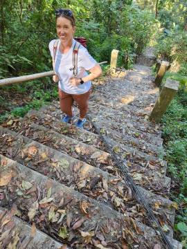 Part of the deal that we had reached with our red truck taxi driver was that she would wait for one hour once she dropped us off so we could explore the wat atop Doi Suthep and would then take us back into Chiang Mai. We took a picture of her license plate and made sure we knew where to find her in an hour and set off to climb the famous steps of the temple.