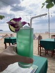 We received a warm welcome as well as an orchid adorned welcome drink as we checked in and a bellhop came to take our bags and show us to our room, and we were excited to see that our room was just a few steps away from the beach. The hotel’s footprint was compact but contained everything we would need for the next few days- a convenience store with a small grocery and liquor section, beach shop, massage hut, and a full and open-air restaurant and bar. The best part was that the restaurant’s seating was directly on the sand of the beach under some shade trees. I couldn’t wait to check it out and immediately headed there as soon as we had checked out our room and unpacked. Scott was tired and opted to nap so I ate by myself looking out over the tranquil Andaman Sea and admired and befriended the stray dogs that were enjoying the shade and hoping for scraps from diners (I of course obliged).