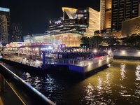 We then made our way to the Chao Phraya river to the unbelievable monolithic behemoth that is the IconSiam Mall. This is where our river dinner cruise would be leaving from shortly. Since we had some time to kill we went into the IconSiam to check it out. No one does malls like the Asians and this one might top them all. Our first mission was to find the bathroom (harder than you would think) and we wound through the most elaborate food court known to man and past the river (yes, river) that flowed through the interior of the mall and was meant to depict a traditional Thai floating market, before finally correctly deciphering the hieroglyphics that indicated the toilet’s location.