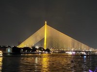 The singing and dancing was not only happening on our deck, but was also happening on each of the two decks below us, and it quickly turned too loud and annoying and poor Scott looked pretty miserable. The boat cruised up the river and under the rather impressive Rama VIII bridge that was a sight to behold at night and from below before turning around and heading back to the IconSiam dock. The amount of boat traffic on the Chao Phraya was astounding- in addition to the usual boat traffic that this waterway hosts at any given hour; ferries, water taxis, commercial boats, longtail boats etc, a congested and steady stream of other dinner cruises marched their way up and down the river bow to stern, like some sort of maniacal carnival carousel ride; the music from each passing boat creating an unintentional and cacophonous discordant dueling banjos situation that would have been funny if Scott was feeling better. We were relieved to finally reach the dock and disembark, both agreeing that of all the boat adventures we had taken together, this was probably the least enjoyable. I needed to get Scott to bed because he was pitiful and he meekly agreed to take a Grab back to the House of Papa rather than the one hour walk, so we took the river taxi across the river to meet our driver and headed home so that Scott could hopefully fight off his bug and I prayed that we hadn’t caught any additional bugs at the buffet… an airplane ride home while battling Bangkok-belly was not something either one of us wanted to experience.