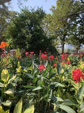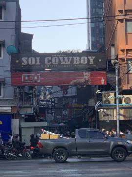 Bellies full we donned our backpacks and headed towards Benchakitti Park to kill time before we could check into our hotel. It is a beautiful green space amidst the urban madness of Bangkok. Along the way we passed the infamous Soi Cowboy. Scott had hoped to hang our hammocks in the park so we could take a much needed siesta but he was quickly shot down (verbally, not literally) by the park guard who barked a stern “NO!” in his direction as he unfurled the hammock and started stringing it up between two trees. Hammocking denied, we opted to just lay in a shady spot on the grass and rest.