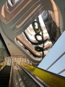 Bodies now beat into submission, we staggered out of the building in search of some lunch. We ended up at a large mall (one of thousands it seemed) near our hotel, called the Em Quartier. The malls in Bangkok were just unbelievable- several stories tall, chocked full of luxury goods stores (Hermes, Fendi, Dior, Louis Vuitton, etc.) and extravagantly decorated with waterfalls and live plants. We had heard that the food court here was worth checking out so we scouted out our options. We settled on a pizza place and split one while people-watching and admiring the ostentatious surroundings.