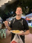 The food vendors were out in force and we enjoyed grazing our way down the street festival, sampling a wide variety of Thai food. I had paused to look at a booth featuring little plant bundles with something wrapped up inside them. A local Thai woman that spoke English helpfully told me about them. It turns out that it was “pandan rice,” a traditional Thai dish. Jasmine rice had been wrapped up in a Pandan palm leaf and steamed. I decided to try one and it was nutty, aromatic, and flavorful.