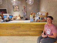 Scott somehow came up with the idea that he wanted to get a haircut when we were in Thailand and had been gleefully looking forward to a Thai barbershop experience since before we even embarked on our trip. Today was finally the day. After breakfast at a cute bakery in our little neighborhood, we wandered around in search of a barber. We had to kill time before they opened so we strolled around a Japanese food market and Scott got a smoothie as a second breakfast.