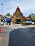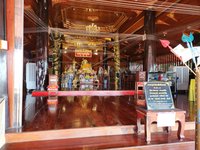 He continued hawking the tour(?) (was it a tour we had signed up for?) until he and the boat driver decided that the boat was suitably full, and we were instructed to put on life vests, and off we went. We went along the Maeklong river for a bit and we enjoyed seeing the riverfront houses. He then pulled up alongside a dock and he barked something in Thai and pointed at a wat (remember what a wat is?) that sat along the edge of the river and indicated we should all get out. We disembarked and went over to the wat to check it out. This one looked mighty similar to the ones we had seen thus far, and after a cursory investigation, we made our way back to the boat so we wouldn’t be left since we hadn’t the slightest clue when he had told us to be back. As we were waiting to board, I jokingly said to Scott that this was the first of the 10 wats on the tour, since I had no clue what sort of tour we were on.