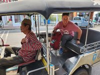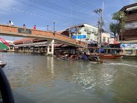 We now needed to get to the Amphawa Floating Market and decided that now was the time and place to take a tuktuk ride. We found a cluster of tuktuk drivers and Scott haggled with one to get us a reasonable price for the seven kilometer trek. We climbed into the back and off we went. I took a timelapse video of it to record the experience for posterity. Of all the taxi rides we took, it was not the most hair-raising and we arrived alive and ready to see the next market.