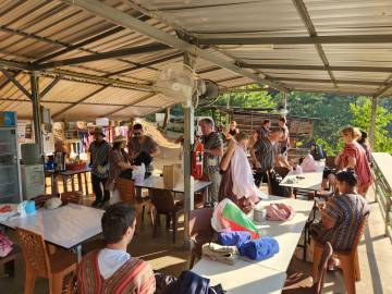 Today was Elephant Jungle Sanctuary day! A minibus from the sanctuary picked us up bright and early from our hotel and we piled into it, introducing ourselves as we climbed over people and made our way to the empty seats in the back. There were people from several different countries1 already on the bus and we were all headed about an hour and a half southwest of Chiang Mai to the sanctuary. The bus stopped about halfway along the route for everyone to have a 7-11 and toilet break before continuing on.