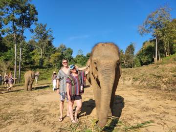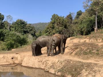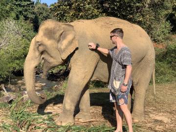 Author’s note: I had to pick my battles here. Through my research prior to our trip, I had learned that truly ethical elephant sanctuaries are touch free and do not let participants touch the elephants, only watch them from a comfortable distance. This means no feeding, no bathing, etc. While there has now been a movement to end elephant riding in Thailand, it is still technically legal, and many unsavory companies still offer it. However, there are many other ways that elephants are exploited for the entertainment of humans: logging, circuses, and even the activities that we did with them such as the feeding, and bathing. Elephants don’t need us to bathe and mudbathe them, and in fact, would probably prefer we not.