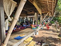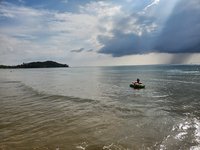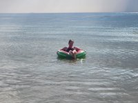 Scott was able to get a dive in on Sunday. Since I do not dive I was on my own for the day. After breakfast and a leisurely walk on the beach, I strolled down to the beach shop that was part of our villa’s complex and bought myself an inflatable inner tube and a 6 pack of Chiang beer and spent the majority of the day perched atop a watermelon floatie, drink in hand, getting merrily bobbed along with the gentle waves of the bay. A nap back in the air conditioning was in order, and when I awoke, to relieve the stress of such a demanding day, I popped over for a massage and was treated to a similar experience as our first Thai massage except this time this massage therapist kept her feet on the ground the whole time and never climbed me like a jungle gym. She did however, still inflict the same levels of pain, and I winced and writhed as she assaulted my muscles and contorted my body into pretzel like configurations.