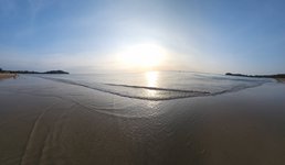 For dinner this evening we decided to wander down the beach a bit and settled on a beach front pizza place. It was a similar get up as our hotel’s beachside restaurant and we ate pizza while sitting at a table on the sand and enjoyed the sight of the water with the night lights of the small beach town casting their glow upon its smooth surface.